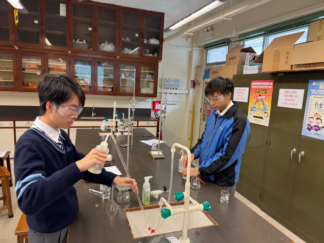 (1.) 化學實驗室的角色:化學是一門實驗導向的學科,學生需親身參與實驗活動來尋找答案,這對建立個人的科學經驗至關重要。本校因此設立專屬化學實驗室,讓同學在課堂上進行實際操作,將所學的化學意念和概念與實驗結果緊密結合,從而深化理解並培養實踐能力。