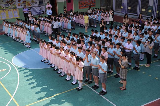 一.)中小聯合早會(開學、聖誕及散學禮等),於中小學部的多用途操場舉行;邀請校監區嘉為執事致詞及田義神父